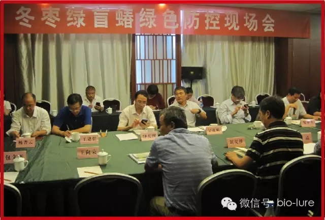 【綠控】2015 年9 月,由中國農(nóng)科院植保所、全國農(nóng)技推廣中心主辦,山東省植保站和我公司承辦的“盲蝽測報與防治技術(shù)規(guī)范研討會暨冬棗綠盲蝽綠色防控現(xiàn)場會”在山東濱州舉行,與會代表參觀了我公司院士專家工作站在研項目“綠盲蝽性引誘劑的生產(chǎn)與推廣”的部分試驗示范。