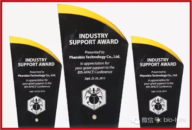 【交流】2015 年9 月,受邀參加在美國加利福尼亞州舉辦的第8屆亞太化學生態(tài)學會,作大會報告,并獲頒“Industry Support Award”獎。