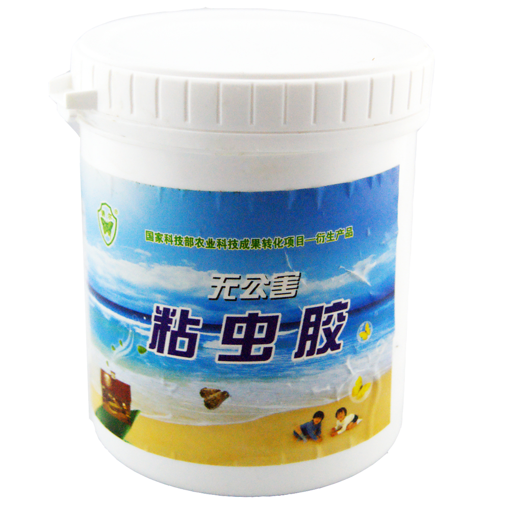 | 包裝規(guī)格 | 0.5kg/桶 1.0kg/桶 2.5kg/桶 | 使用范圍 | 粘蟲(chóng)膠可以廣泛的應(yīng)用于農(nóng)業(yè)、林果、花卉生產(chǎn)中有關(guān)害蟲(chóng)的無(wú)公害防治。適用于蚜、螨(紅蜘蛛等)、尺蠖、綠盲蝽象、草履蚧、粉蚧等具有上下樹(shù)習(xí)性的害蟲(chóng)。 應(yīng)用粘蟲(chóng)膠防治害蟲(chóng)技術(shù)是一項(xiàng)遵循農(nóng)林生產(chǎn)綠色、環(huán)保、無(wú)公害理念,推行物理防治和生物防治來(lái)保護(hù)環(huán)境的植物保護(hù)技術(shù)。 該技術(shù)具有操作簡(jiǎn)便、維持時(shí)間長(zhǎng)、防治效果顯著、抗風(fēng)吹日曬、無(wú)污染、質(zhì)量穩(wěn)定、成本低廉等優(yōu)點(diǎn)。 | 產(chǎn)品特點(diǎn) | 無(wú)毒:經(jīng)河北省產(chǎn)品質(zhì)量監(jiān)督檢驗(yàn)院檢測(cè)產(chǎn)品質(zhì)量合格,符合國(guó)家相關(guān)規(guī)定; 無(wú)腐蝕性:高分子中性混聚物沒(méi)有任何腐蝕性; 粘性強(qiáng):根據(jù)季節(jié)不同,粘度可以達(dá)到3萬(wàn)~10萬(wàn)以上單位,遠(yuǎn)遠(yuǎn)超出普通膠帶的粘度;