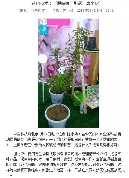 中國科技網(wǎng)、北京科技視頻網(wǎng)等多家媒體,于北京科技周主場活動期間,對北京中捷四方生物科技股份有限公司的昆蟲信息素綠色防蟲產(chǎn)品及技術(shù)進行采訪及報道。相關(guān)報道截圖如下: