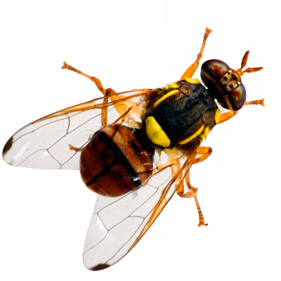 | 配套誘捕器 | 實蠅誘捕器 | 昆蟲信息 | 柑橘小實蠅(Dacus dorsalis),別名:黃蒼蠅、果蛆。 頭黃色或黃褐色,中顏板具圓形黑色顏面板1對,中胸背板大部黑色,縫后黃色側(cè)縱條1對,伸達內(nèi)后翅上鬃之后;肩胛、背側(cè)胛完全黃色。小盾片除基部一黑色狹縫帶外,余均黃色。翅前緣帶褐色,伸達翅尖,較狹窄,其寬度不超過R2+3脈;臀條褐色,不達后緣。足大部分黃色,后脛節(jié)通常為褐色至黑色,中足脛節(jié)具一紅褐色端距。腹部棕黃色至銹褐色。第二背板的前緣有一黑色狹縱色,自第三背板的前緣直達腹部末端。組成“T”形斑。第五背板具腺斑1對。雄蟲第三背板具櫛毛。雌蟲產(chǎn)卵管基節(jié)棕黃色,其長度略短于第五背板。 柑橘小實蠅每年發(fā)生3-5代,在有明顯冬季的地區(qū),以蛹越冬,而在冬季較暖和的地區(qū)則無嚴格越冬過程,冬季也有活動。生活史不整齊,各蟲態(tài)常同時存在。廣東全年均有成蟲出現(xiàn),5-10月發(fā)生量大。成蟲可多次交尾,多次產(chǎn)卵。 |